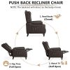 • Three Relaxation Modes: Our small living room recliner employs a pushback system for reclining. Simply place your feet apart on the floor with your arms on the armrests and use your body weight to push backward. To come back up, tilt your body weight forward and upwards. You can enjoy your favorite sitting positions on this adjustable reclining chair, no matter you prefer sitting up straight or with your legs up or lying down to 160°