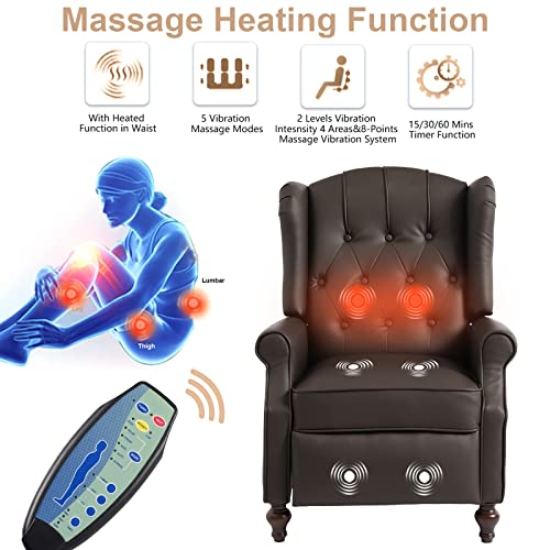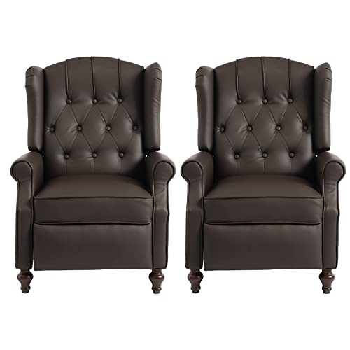 IPKIG Wingback Pushback Recliner Chair – Mid Century Recliner Armchair with Massage and Heat, Rivet Decoration, Button-Tufted Back, Solid Wood Legs for Living Room, Bedroom, Office, Set of 2