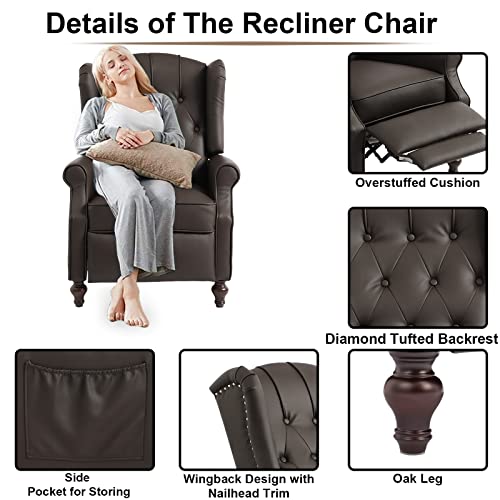 • Mid Century Modern Design: With a Button-tufted Diamond Design the pushback recliner chair will brighten your living decor. Next to the armrests are accented nail heads for an extra touch of sophistication and artisanal touch. And brown fabric recliner is ideal for most kinds of the decor style. Ideal for living rooms, bedrooms, theater rooms and media rooms